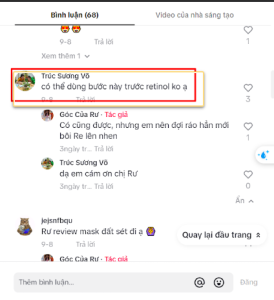 Bên cạnh đó, các tương tác từ khán giả cho thấy nhiều người đã nhắc đến sản phẩm Snail Mucin của COSRX – một sản phẩm khác đã quen thuộc với người tiêu dùng. Điều này cho thấy COSRX đã xây dựng được vị thế vững chắc tại thị trường Việt Nam, và khả năng kết nối giữa các sản phẩm giúp củng cố thêm uy tín thương hiệu cũng như tiềm năng phát triển lâu dài.